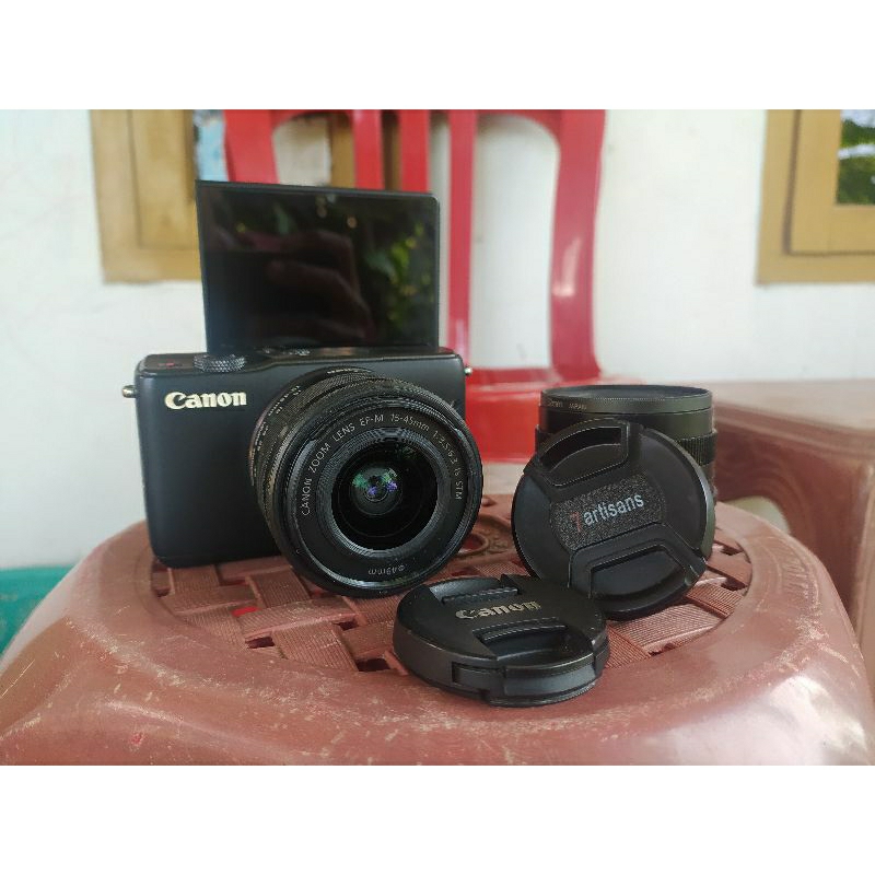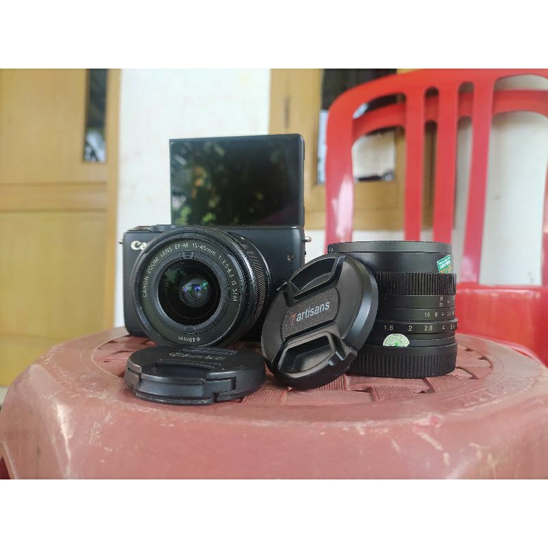 kamera Canon M10 2 lensa, lensa kit & Fix 7 artisan 50mm