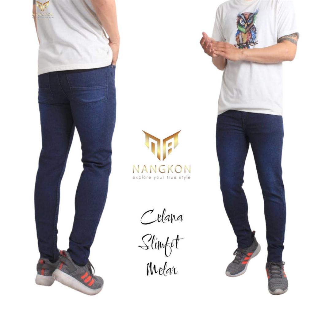 APL STORE - Celana Jeans Pria Bahan Melar Slimfit Pensil Cowok Hitam Pekat Streech Premium