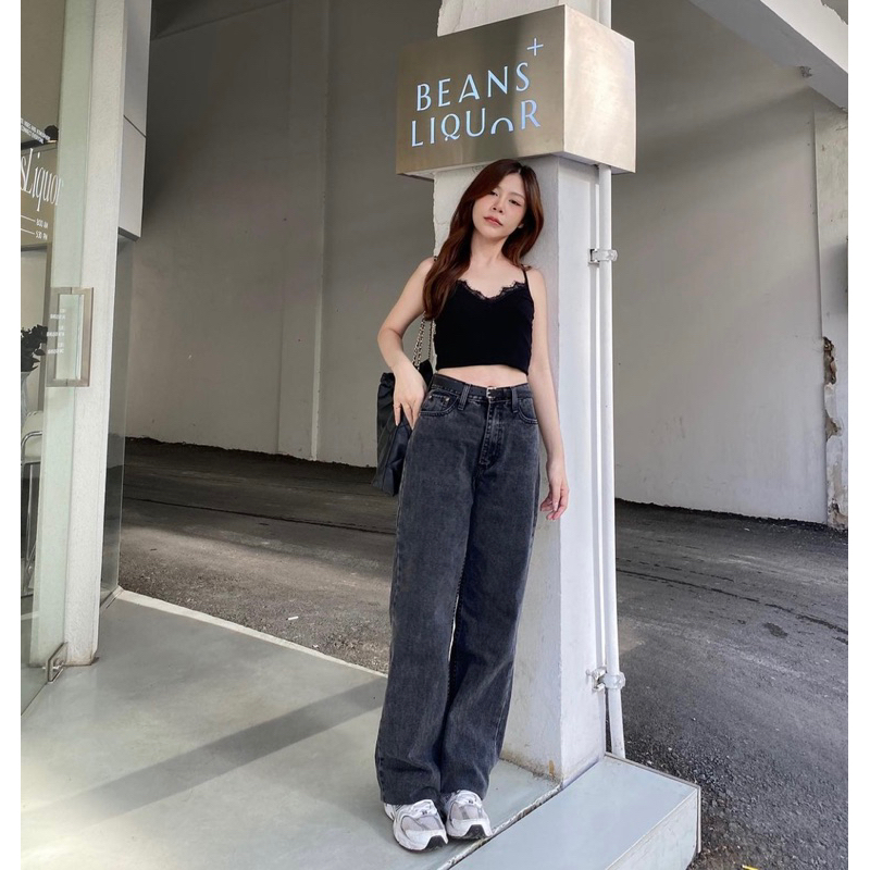 Highwaist Kulot Jeans Wanita Loose Vintage Denim