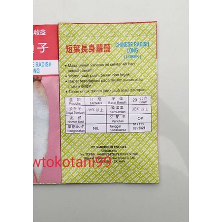 Benih lobak tafung 20 gram lobak putih chinese radish long 20 gram lobak tafung lobak putih ta fung