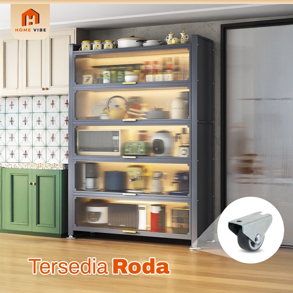 Rak Dapur Dengan Pintu Tertutup Full Besi Lemari Rak Piring Susun Rak Oven Microwave Minimalis