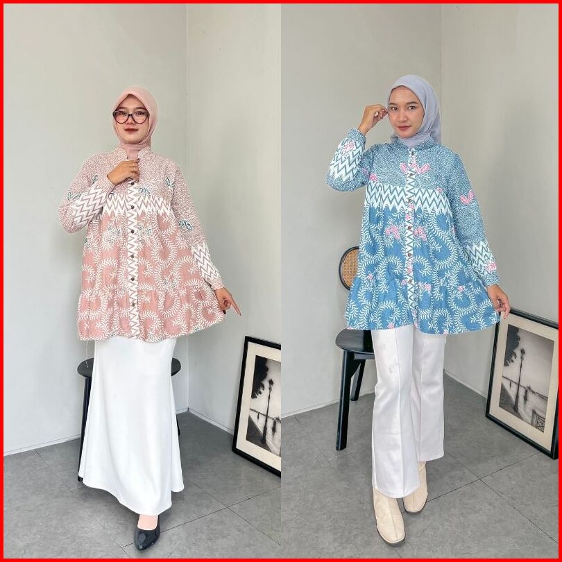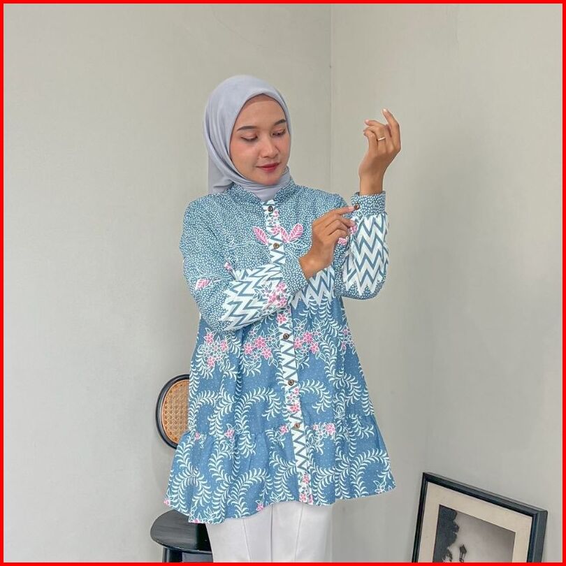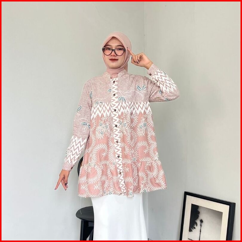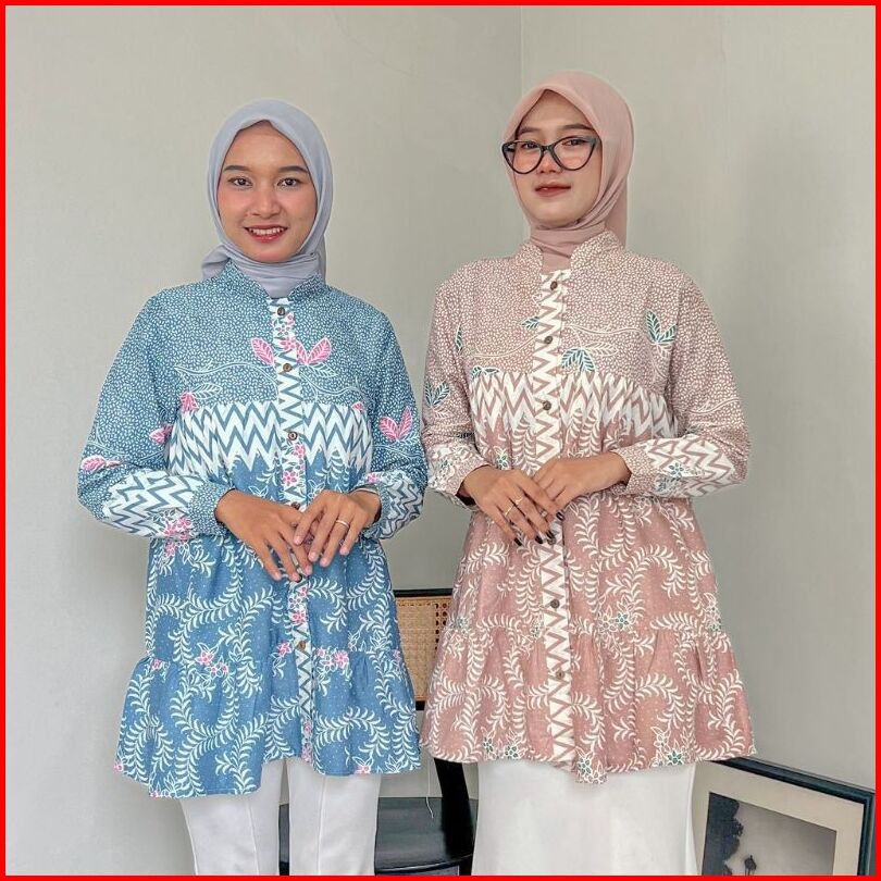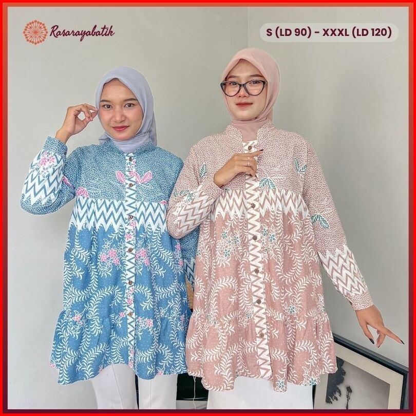 Rasaraya Batik Audia Blouse Wanita Katun - Atasan Batik Kerja Warna Pastel Busui Dan Bumil Friendly