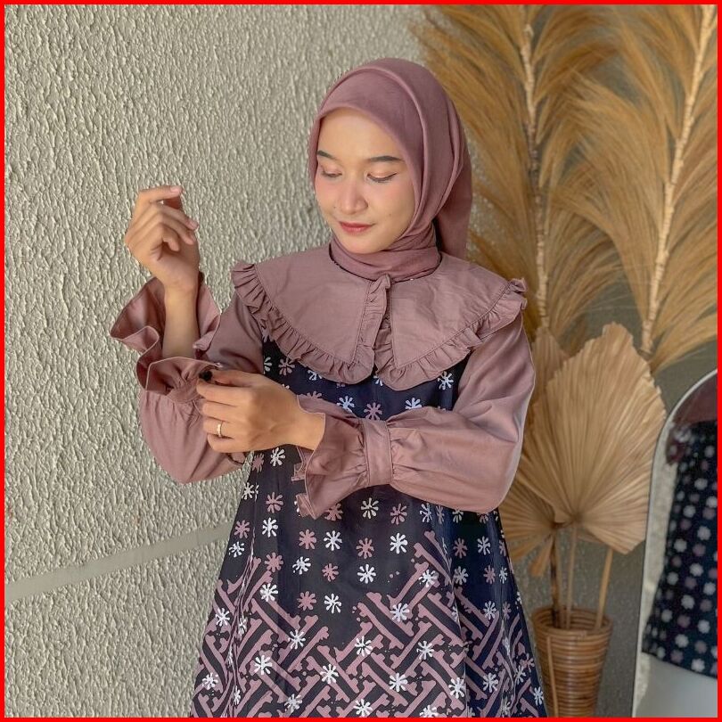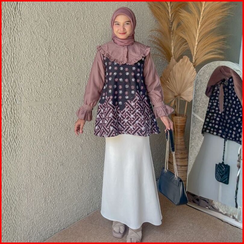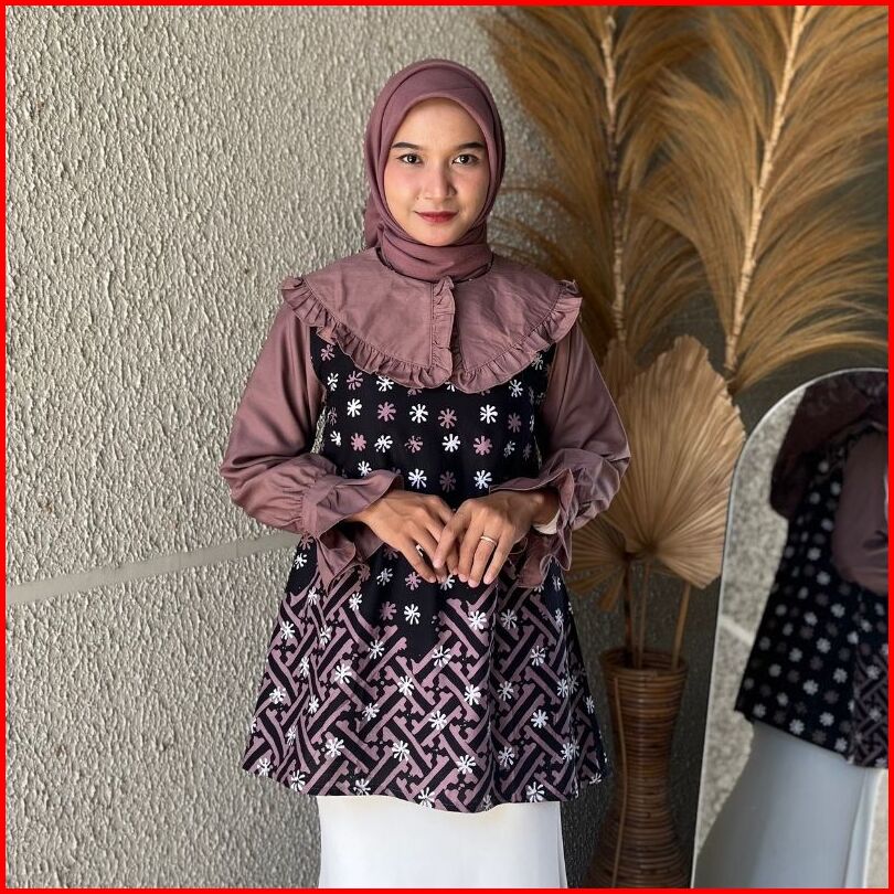 Rasaraya Batik Anatari Blouse Wanita - Atasan Batik Cap Mauve Kerah Rampel Elegan
