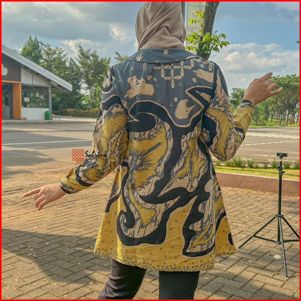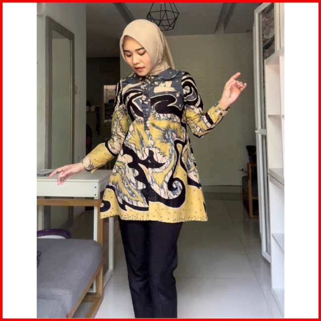 Hedia Tunik Blouse Atasan Batik Kerja Kantor Wanita Modern Kekinian Print Katun Abstrak