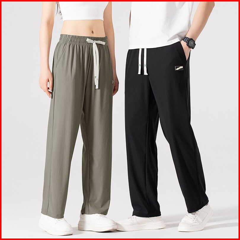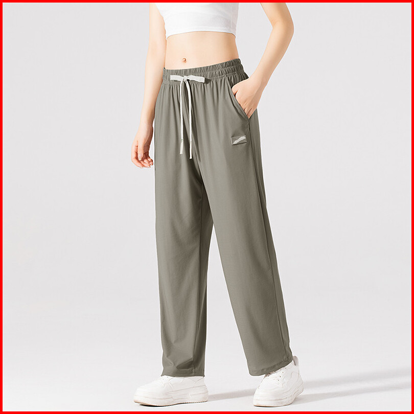 Disai - Celana Wanita Panjang Kotak-kotak Kecil Ice Silk Fabric Keren Bernapas Elastisitas Pants
