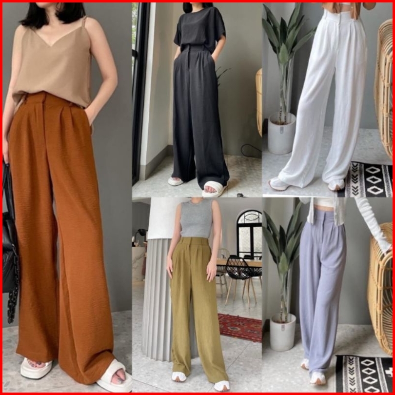 Celana Kulot Cringkle Highwaist Wanita Loose Pants Cullote