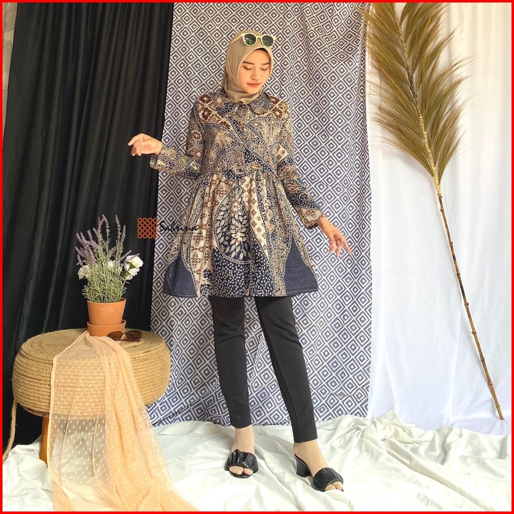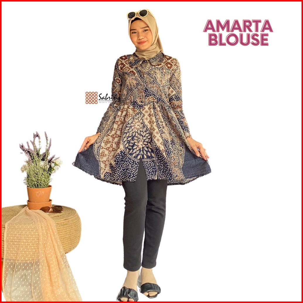 Amarta Tunik Blouse Kemeja Atasan Batik Kerja Kantor Kondangan Wanita Kekinian Katun Modis Busui