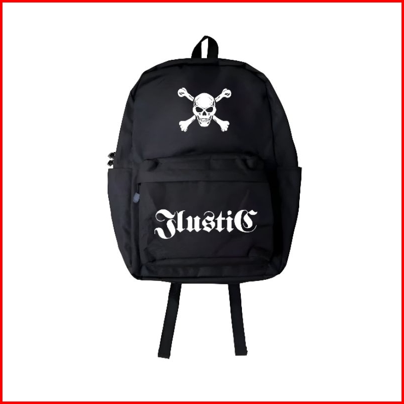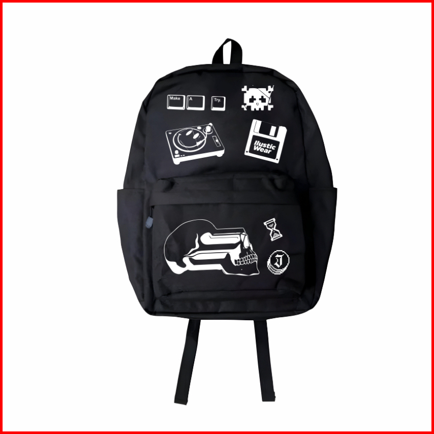 Tas Ransel Sekolah Pria Wanita Hitam Keren Bahan Cordura-ilustic