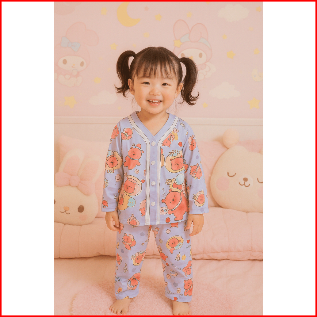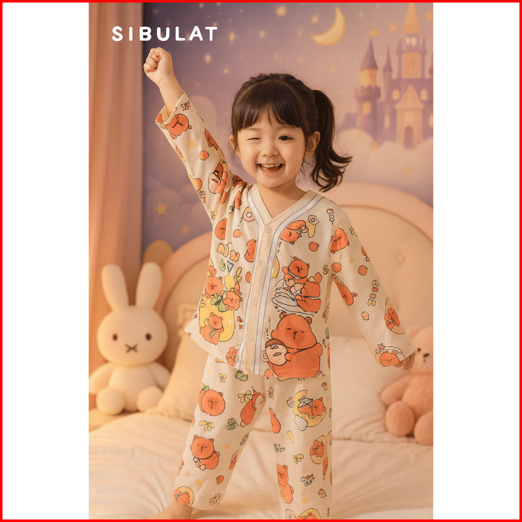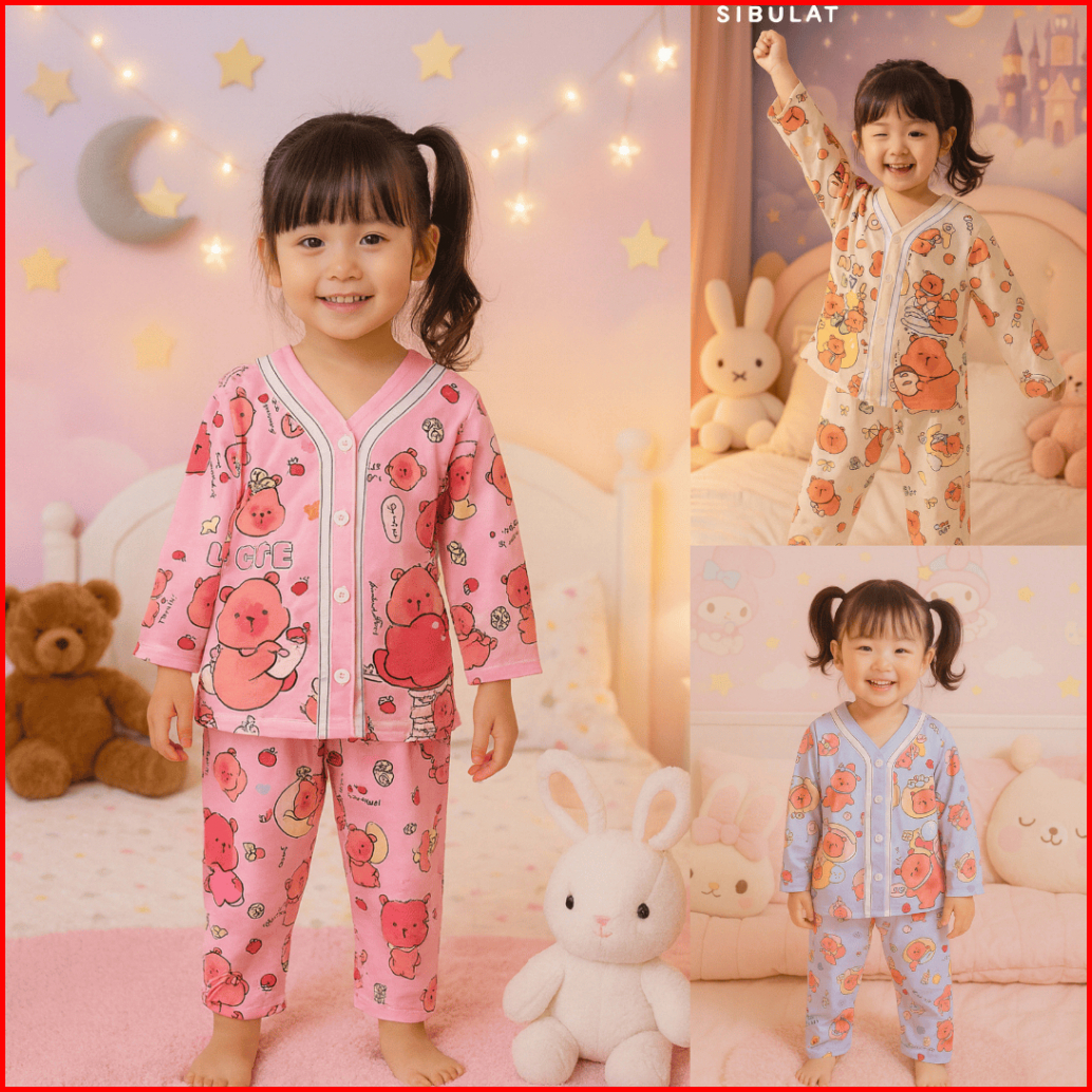 Sibulat 84 Piyama Baju Tidur Anak Perempuan Full Printing Motif Bear Usia 1-6 Tahun