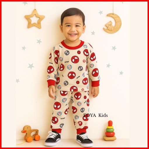 Foya Kids - Setelan Baju Tidur Anak Laki - Laki Usia 0-6 Tahun Setelan Premium Anak Motif Spiderman Dinosaurus Superhero