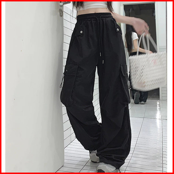 Yuruma Oversize S-4xl Celana Kargo Pinggang Tinggi Untuk Wanita Celana Baggy Kaki Lebar