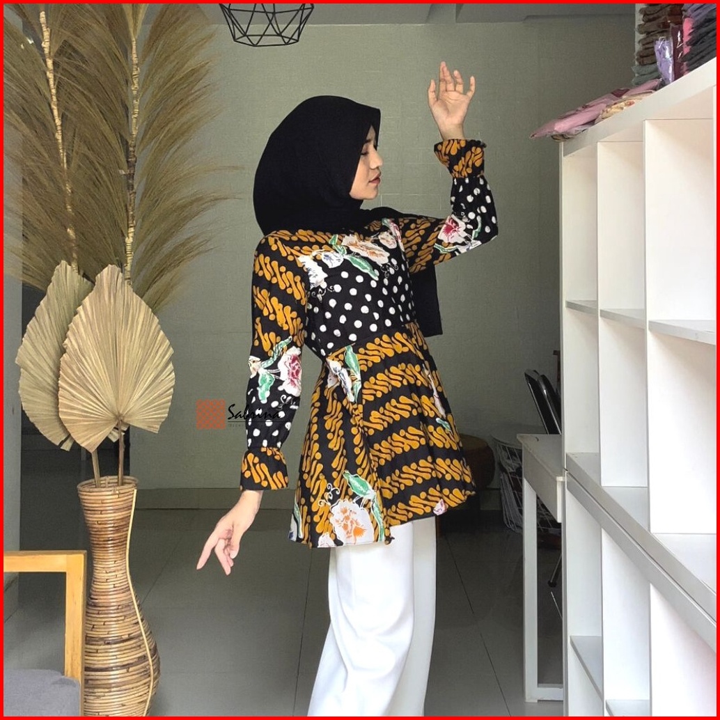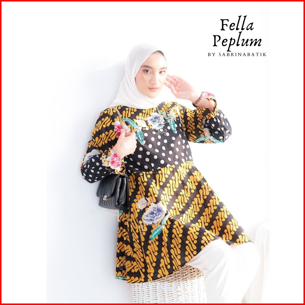 Fella Peplum Blouse Atasan Batik Kerja Kantor Modern Wanita Cantik Modis Kekinian Cap Elegant