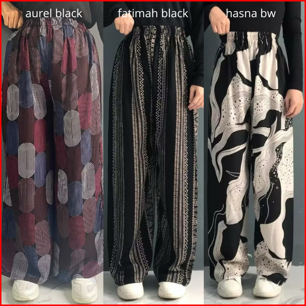 Threelook - Paket Hemat 3 Pcs Celana Kulot Hommy Rayon Viscose Marshanda Model Remaja Kekinian Motif Terbaru 2025