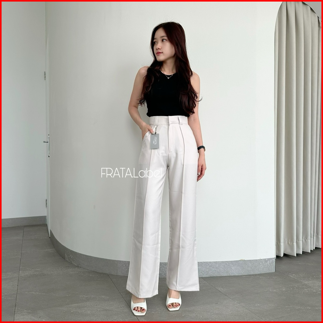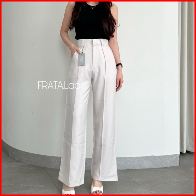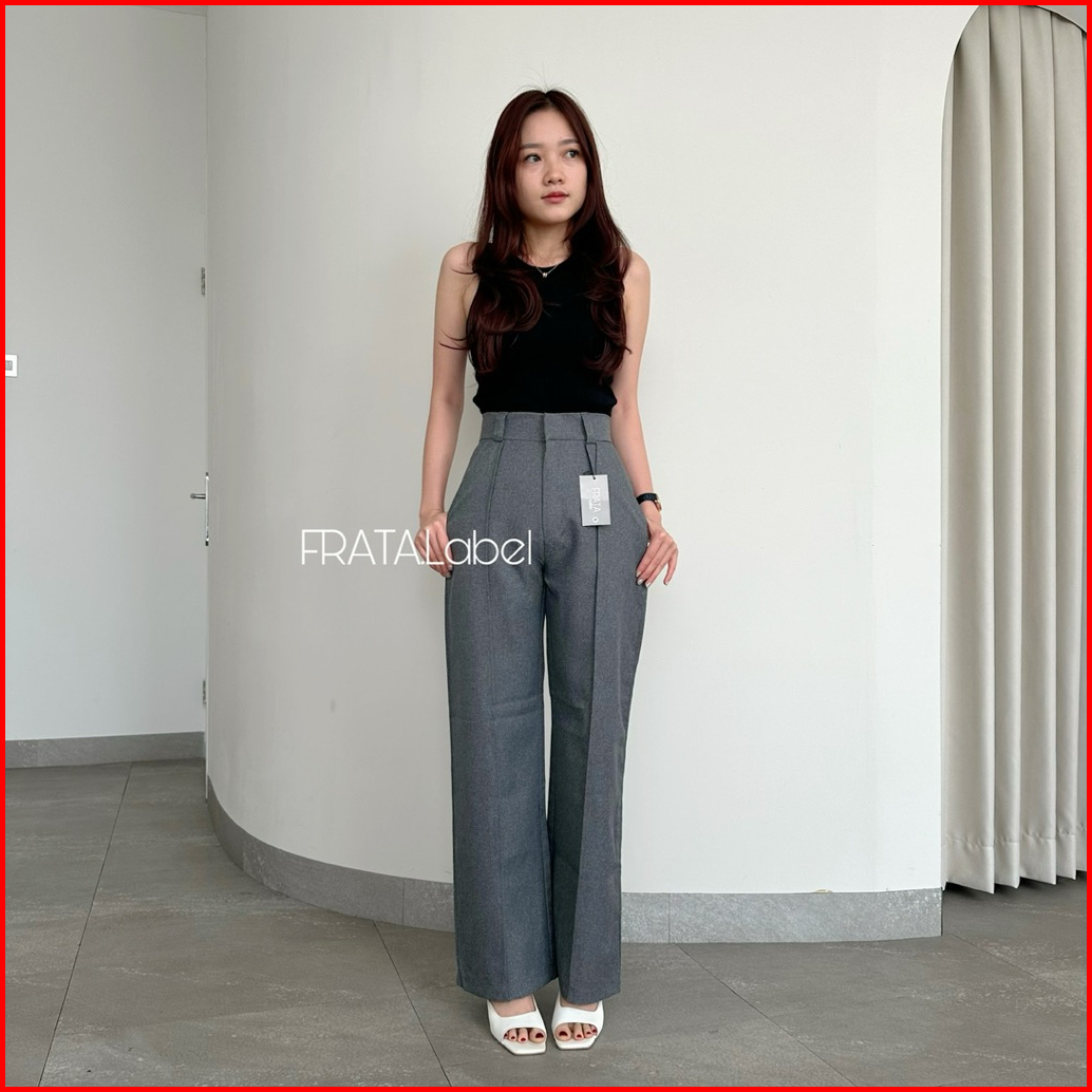Frata Kendra Highwaist Pants Straight Loose Celana Kulot Highwaist Loose Pants Wanita Dewasa Panjang Wool