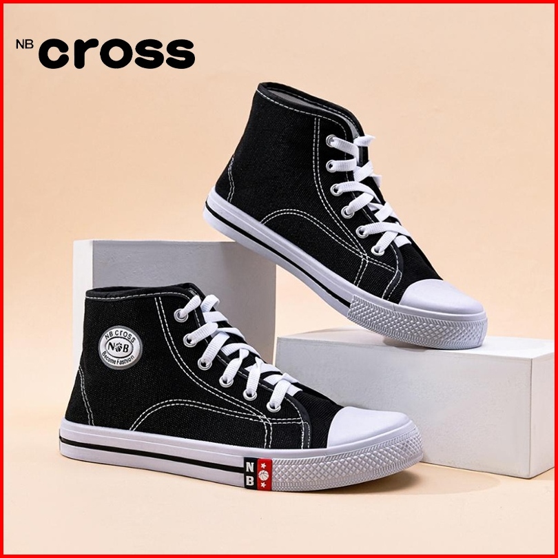 Nbcross Sepatu Sekolah Bertali Sepatu Pelajar Hitam Putih Sepatu Kanvas Ukuran 29-43
