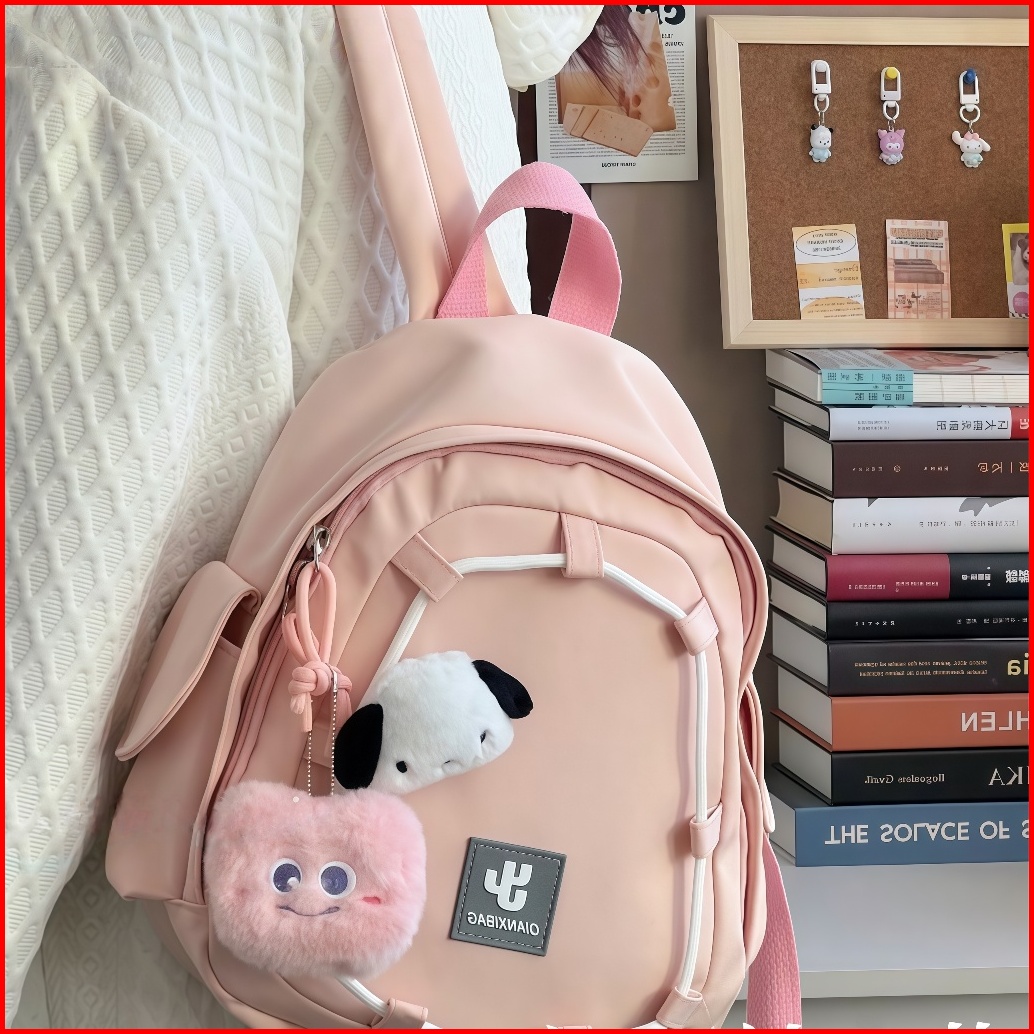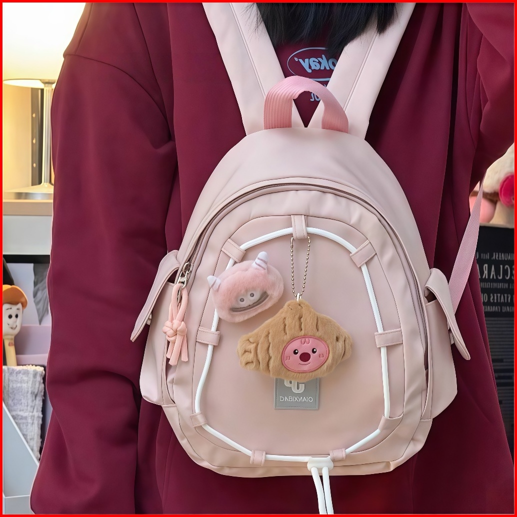 Cantikero Tas Ransel Ins Korea Import Fashion Tas Bahu Pink Kanvas Siswa Backpack Lucu Tas Sekolah