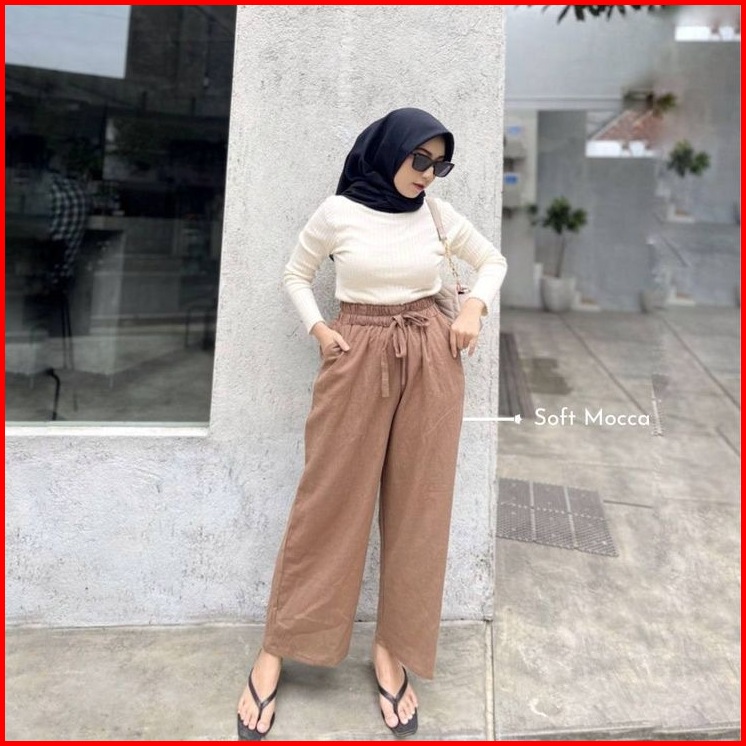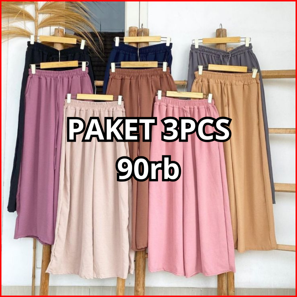 Threelook - Paket Murah Isi 3 Pcs Celana Kulot Crinkle Airflow Tali Serut Remaja Kekinian Viral Terlaris