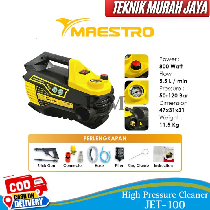 MAESTRO JET 100 Mesin Cuci Steam Jet Cleaner Adjustable Pressure Induksi 800 Watt 120 Bar Benz Xenon Yamamax Matrix NRT