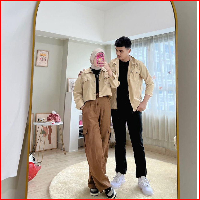 Outfit Couple - Kemeja Kanvas Couple Sudah Isi 2 Pcs - Baju Couple Pria Wanita Korean Style