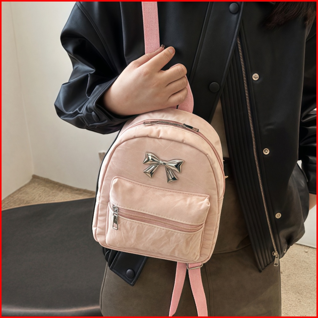 Tas Ransel Wanita Pu Lucu Mini Sintetis Model Terbaru Pink Tas Cewek Korea Import Fashion Backpack Tas Sekolah Kasual