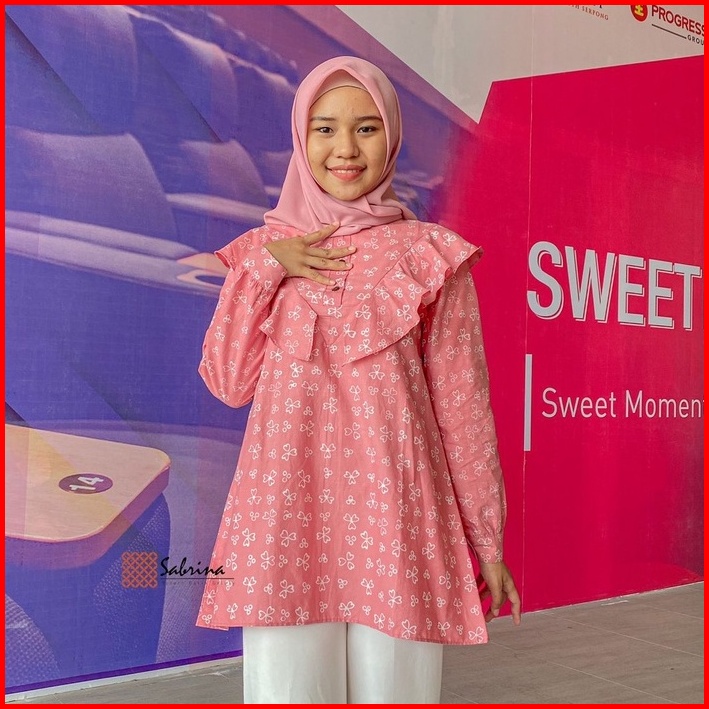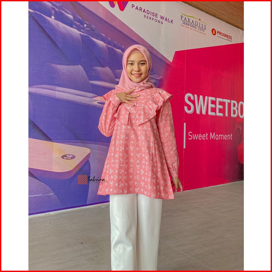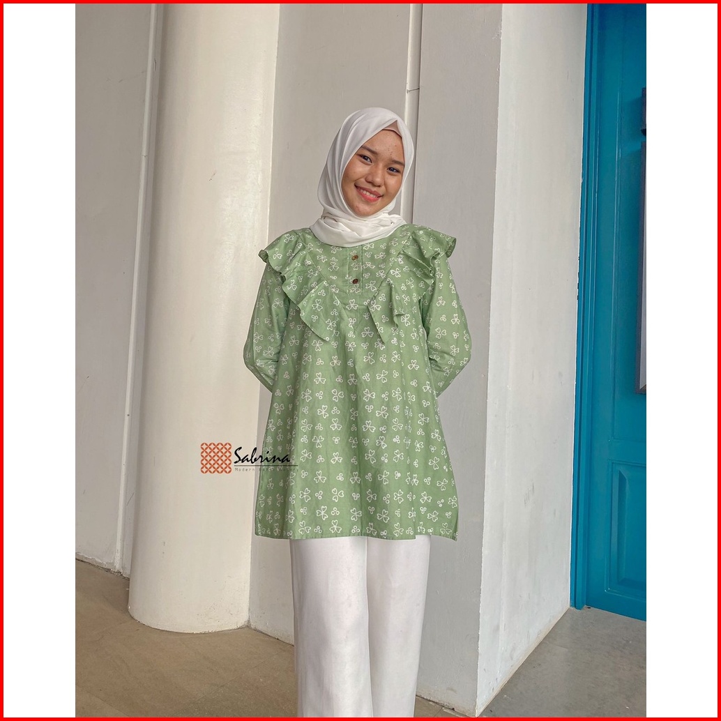 Marcie Blouse Atasan Batik Kerja Kantor Wanita Cap Pastel Kekinian Modern Modis Kekinian