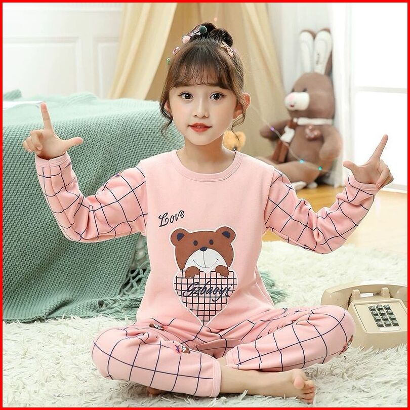 Setelan Anak Baju Tidur Lengan Panjang Cewek Cowok Size S M L Xl Xxl