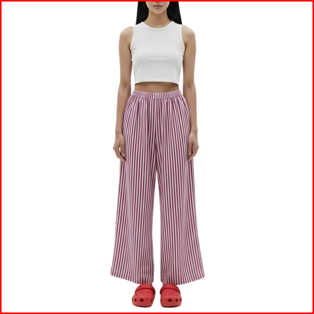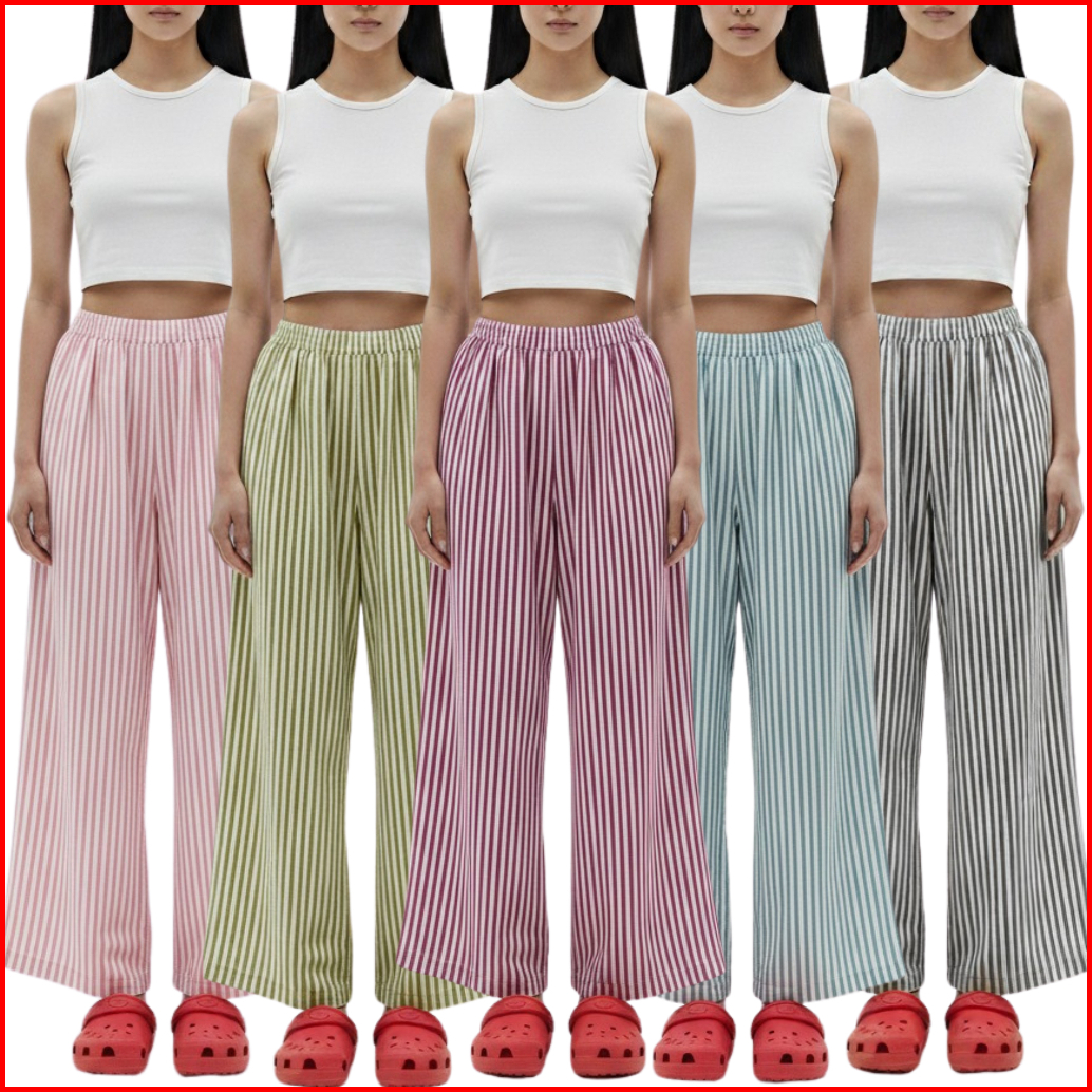Threelook - Celana Kulot Motif Garis Kulot Daily Kasual Warna-warni Lurus