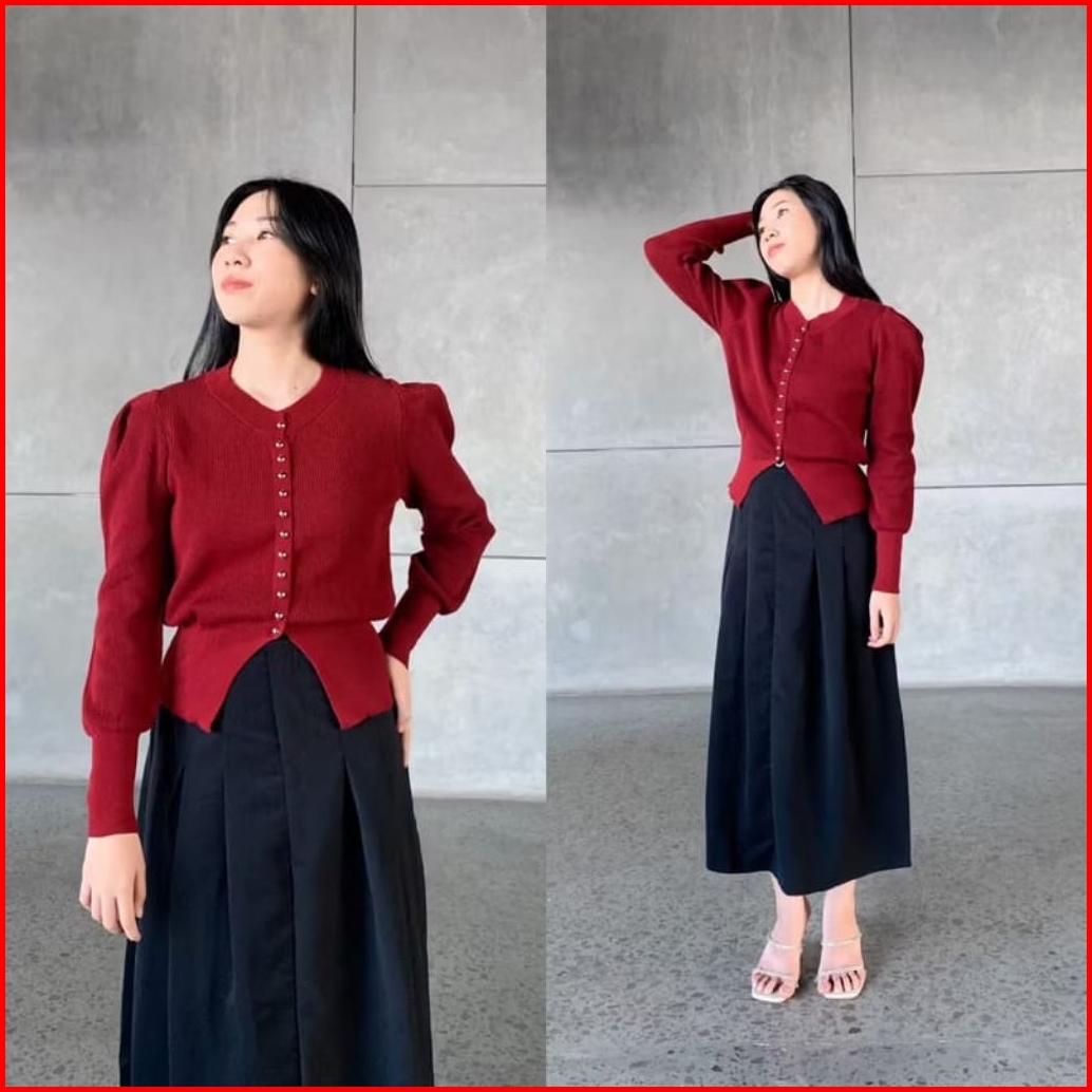 Tamara Cardigan Knit Atasan Wanita Kancing Jamur Aktif Buka Tutup
