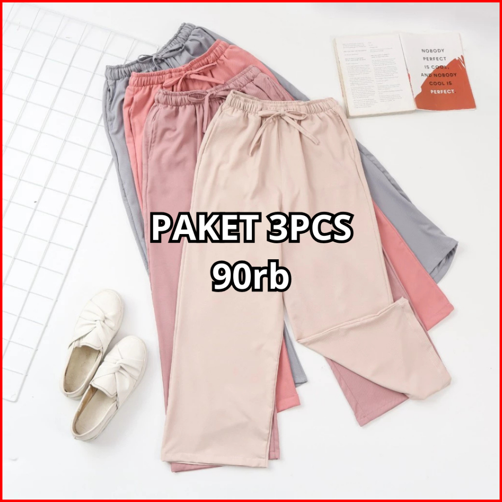 Threelook - Paket Hemat Isi 3 Pcs Celana Panjang Wanita Kulot Crinkle Airflow Terlaris Adem Dan Tebal Ukuran Jumbo Sampe
