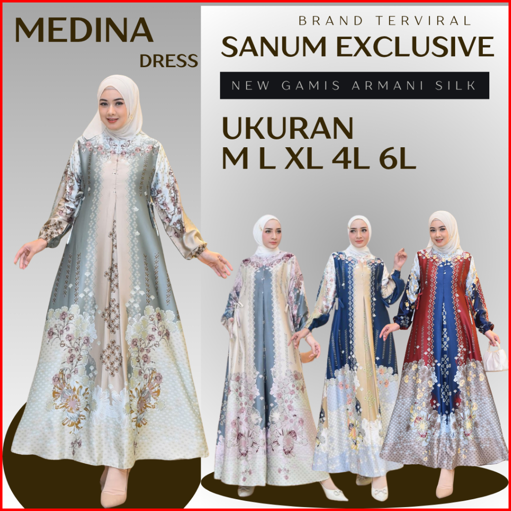 Baju Gamis Armani Silk Premium Wanita Quality A Motif Bunga Seragaman M L Xl 4l 6l Kondanggan