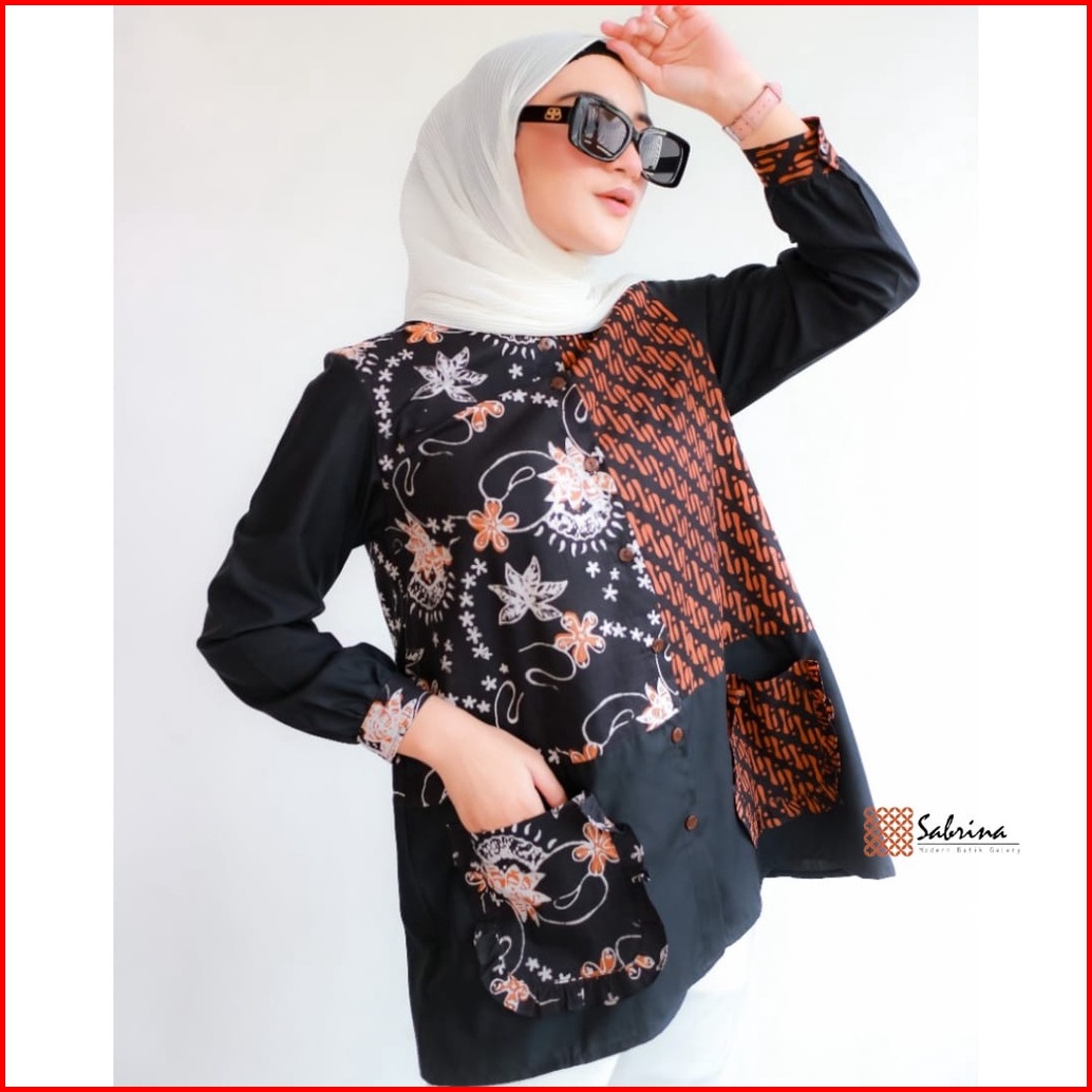 Malvi Blouse Batik Cap Kombinasi Cantik Elegan Busui Tangan Panjang