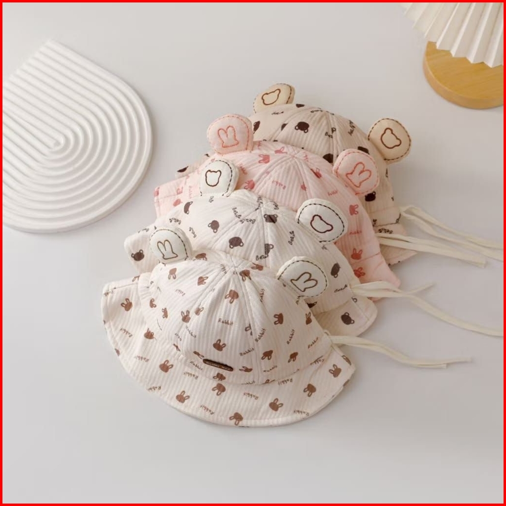 Topi Bucket Duominuo Rabbit Bear Pattern Premium Tebal Halus Topi Bayi Baby
