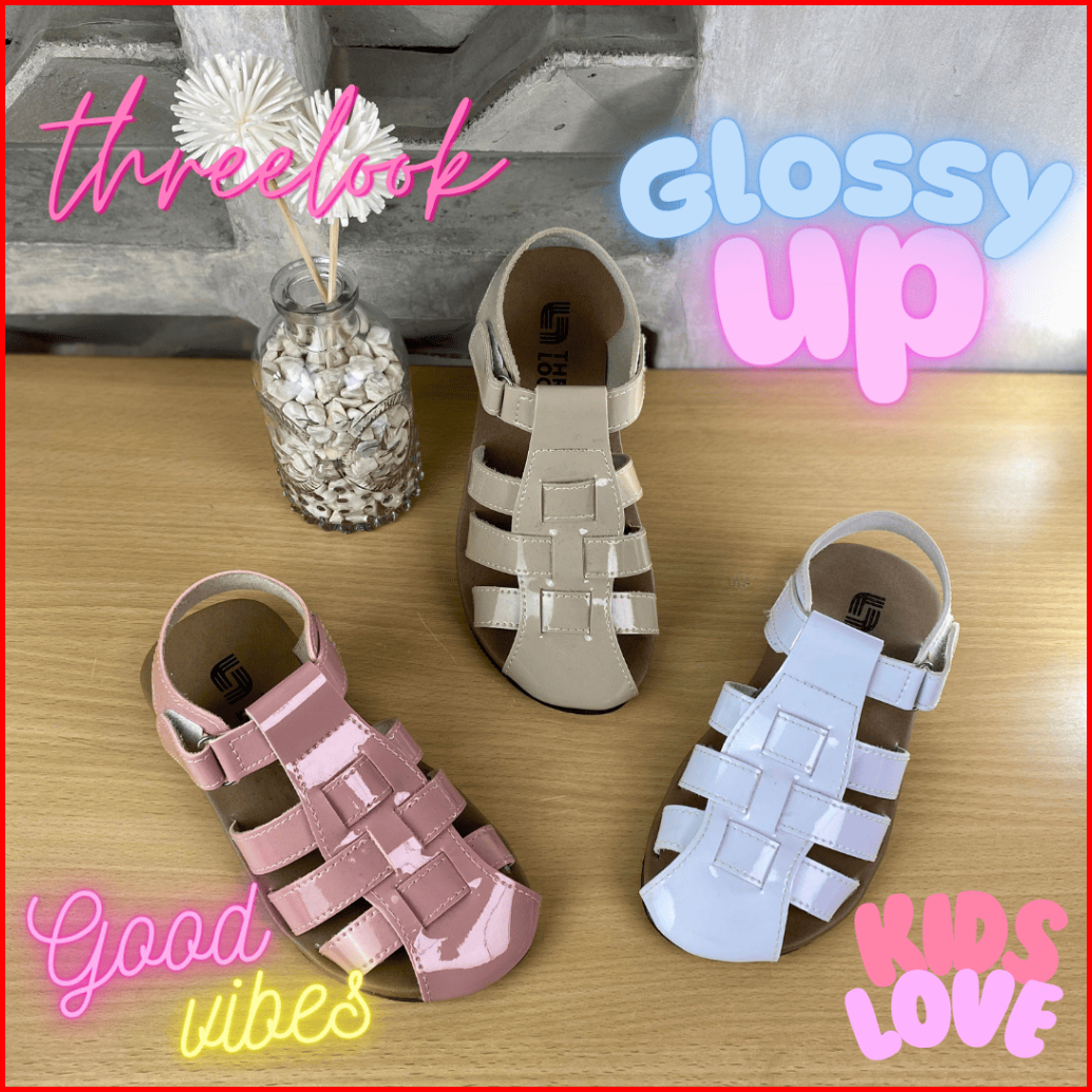 Threelook - Sandal Sepatu Anak Perempuan Terbaru 2025 Sandal Anak Kekinian Yoan Glossy Anti Slip Simple Cantik Mewah