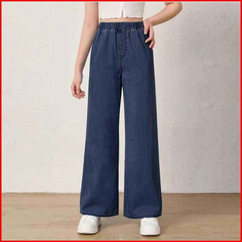 Celana Jeans Wanita Baggy Jeans Jeans Kulot Pinggang Karet Melar Jumbo Bisa Sampai Bb100kg