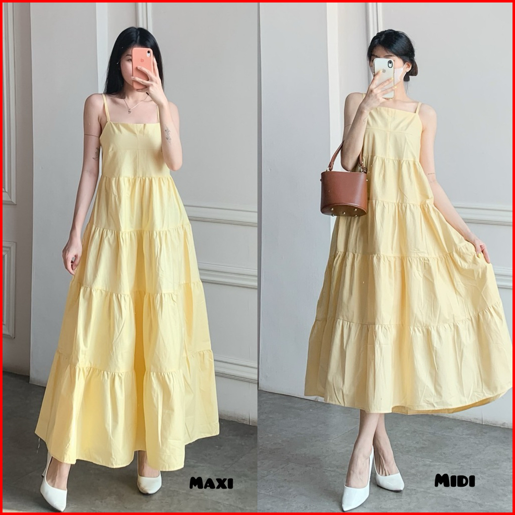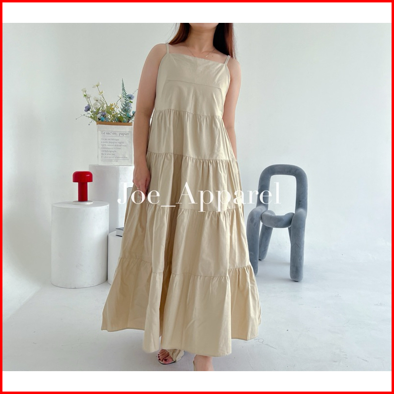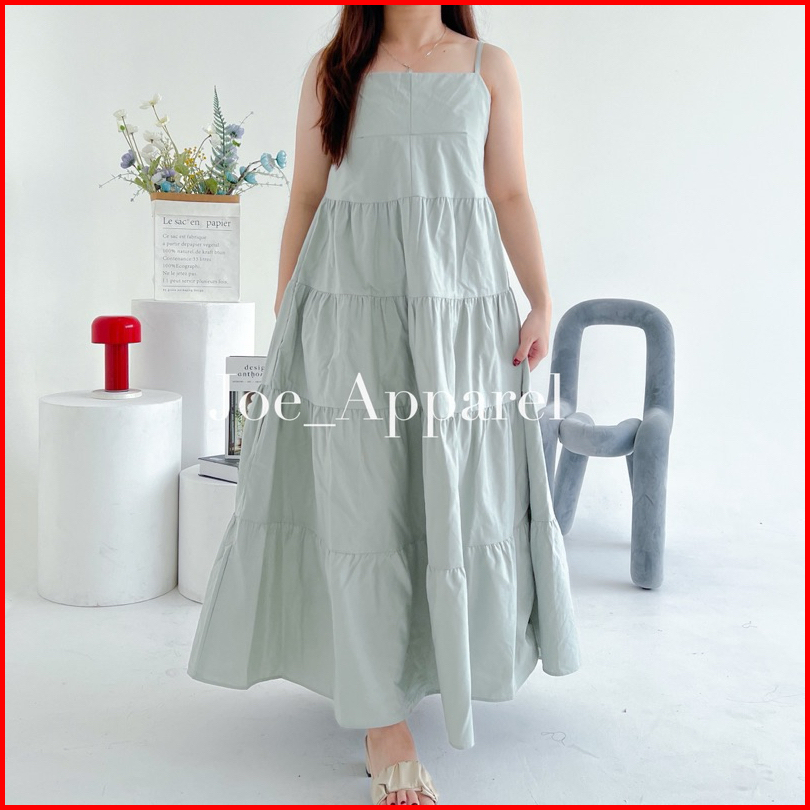 Anita Loose Flowly Sleeveless Midi Dress Pantai Premium Polos Lengan Tanpa Lengan Bisa Buat Hijab