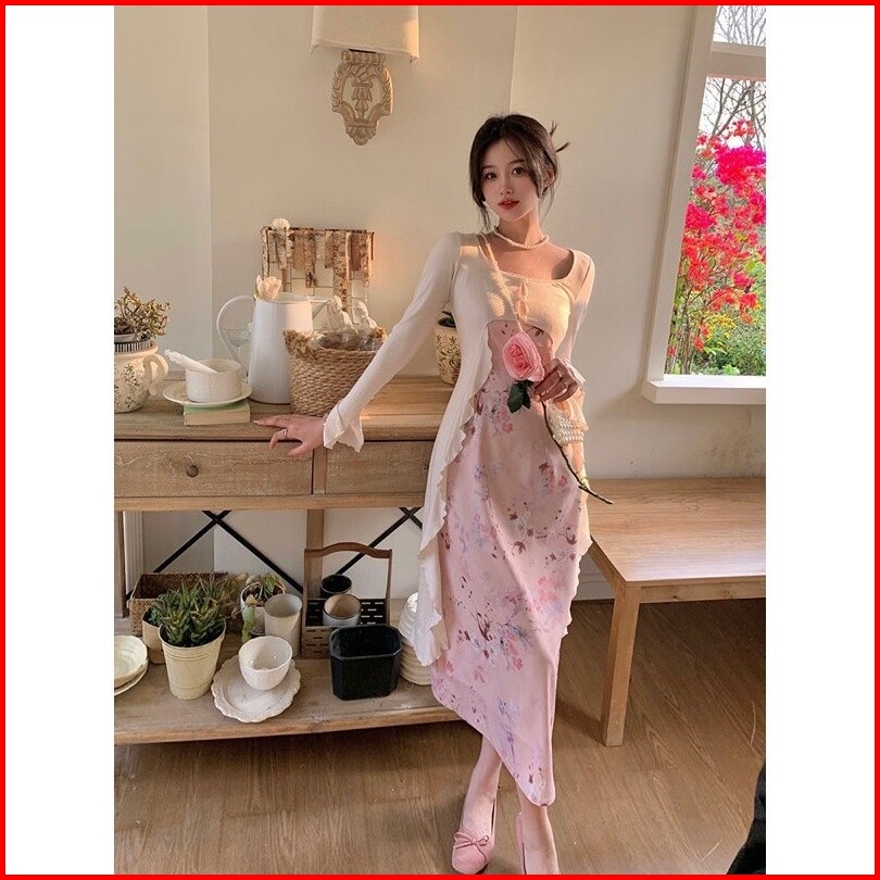 Monica Dress Vintage Flower Dress Long Cardigan Suit Dress -baju Batik Wanita-maxi Dress