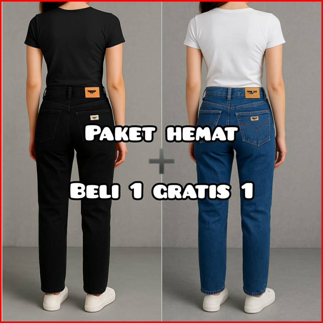 Beli 1 Gratis 1 Celana Jeans Wanita Standar Reguler Fit Premium Non Stretch Nyaman Dipakai Sehari-hari