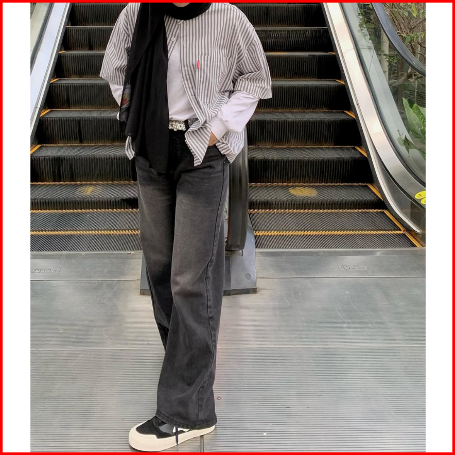 Baggy Jeans Retro - Celana Jeans Wanita Oversize Gombrong Retro Loose Korean Style