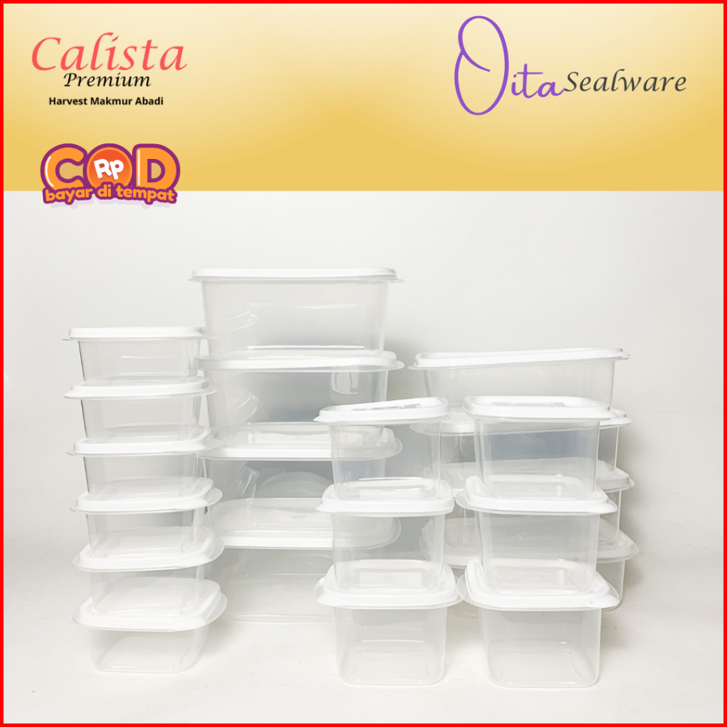 New Oita 20 Pcs Calista Toples Makanan Set Wadah Penyimpanan Makanan Set Toples Bening Toples Transparan Kedap Udara Var