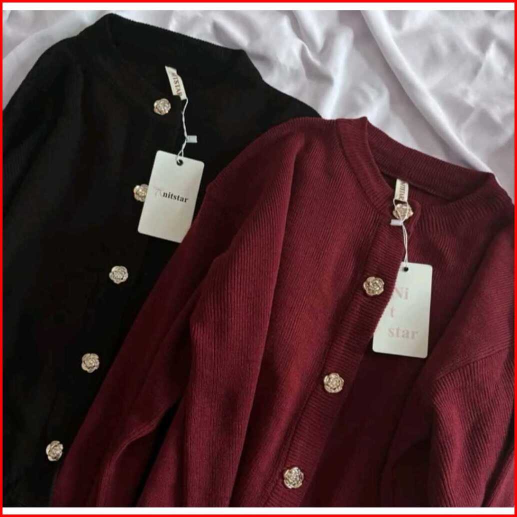 Cardigan Kancing Bunga Import Atasan Wanita Knitwear Outer Cardigan Sweater Fit