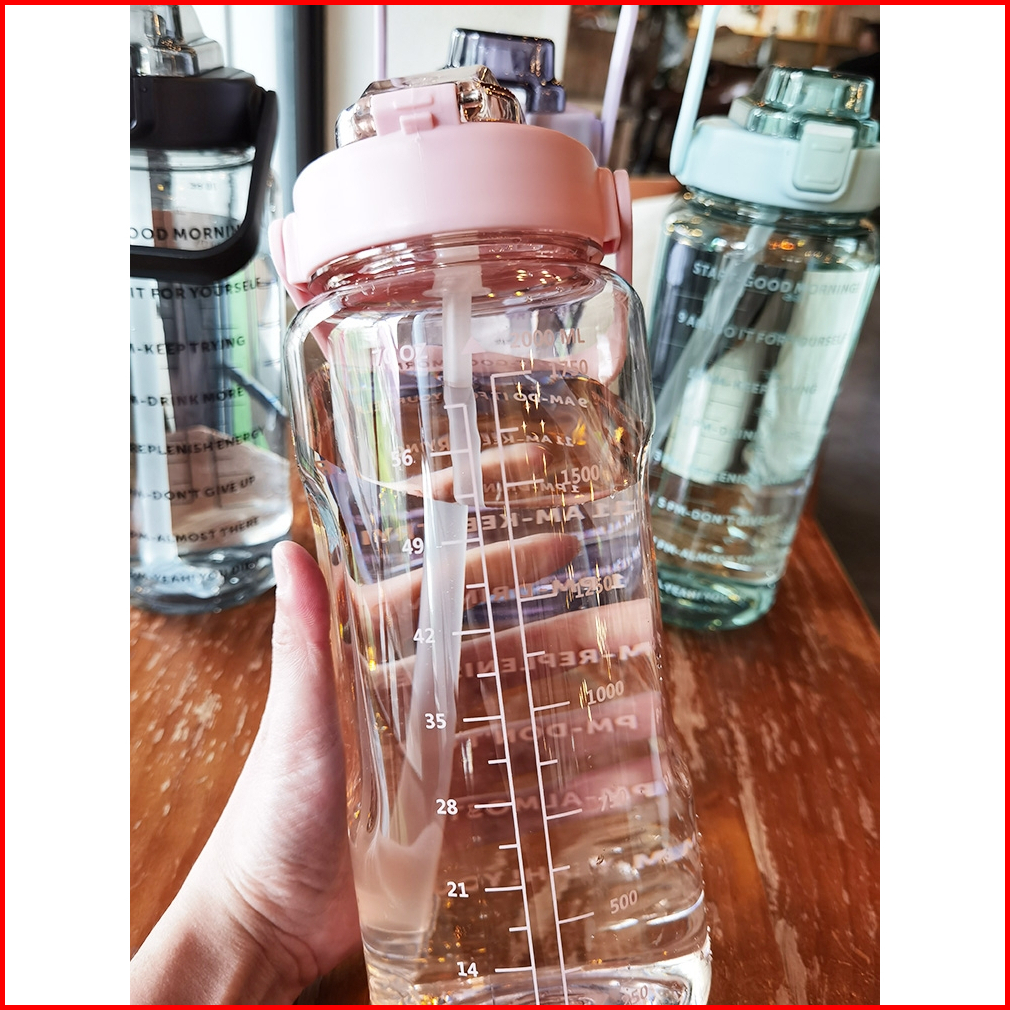 Botol Minum Jumbo 2 Liter Motivasi Penanda Waktu Tritan Quifit Handle Bening 2000ml