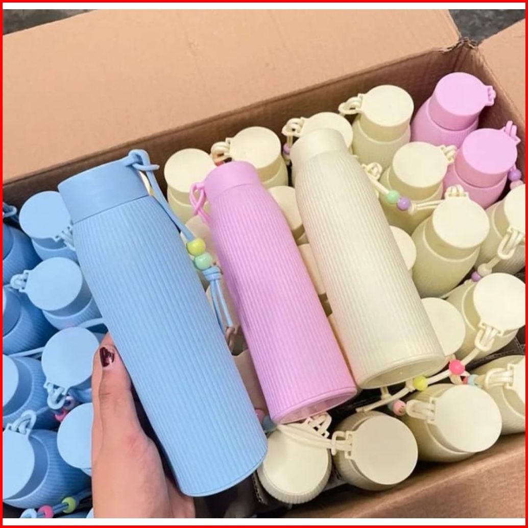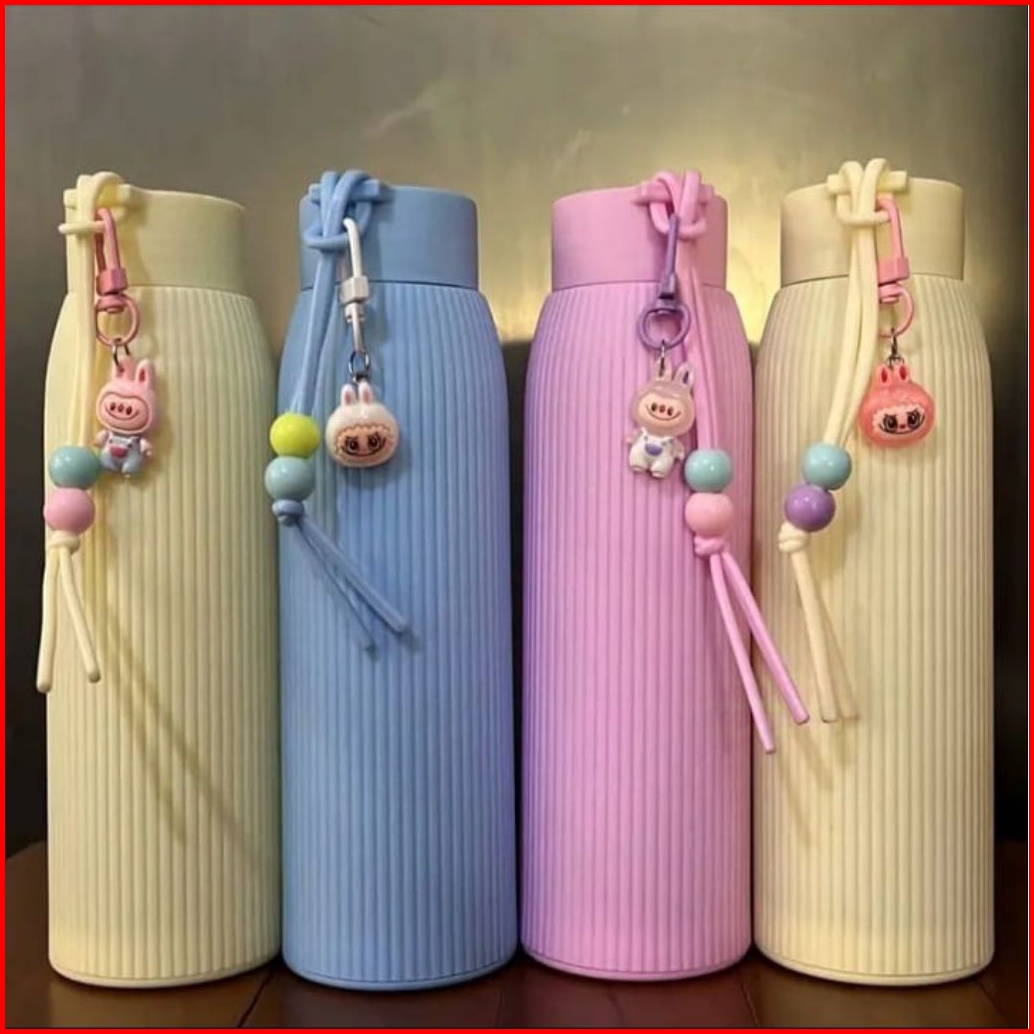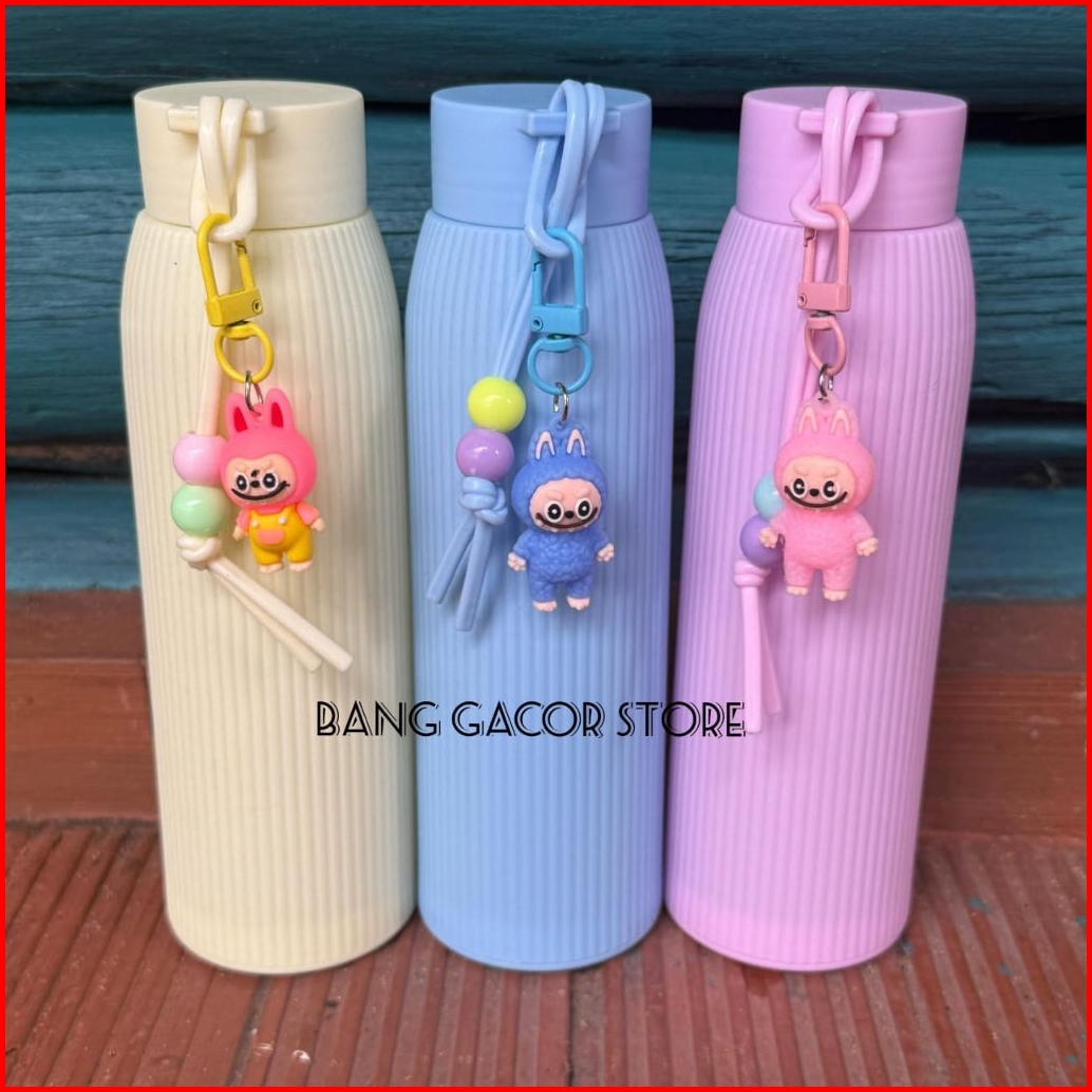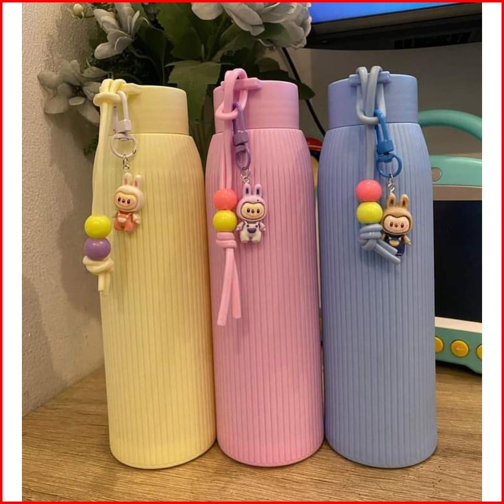 Botol Minum - Tumbler Jepang Botol Macaron Termos 500ml Free Gantungan Boneka Labubu Viral Terlaris
