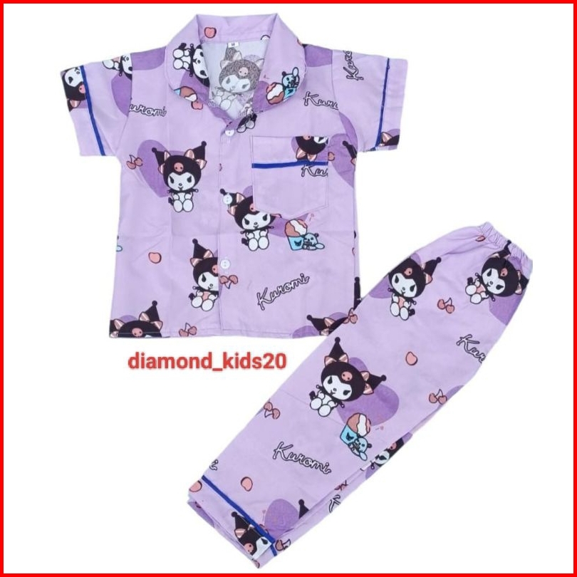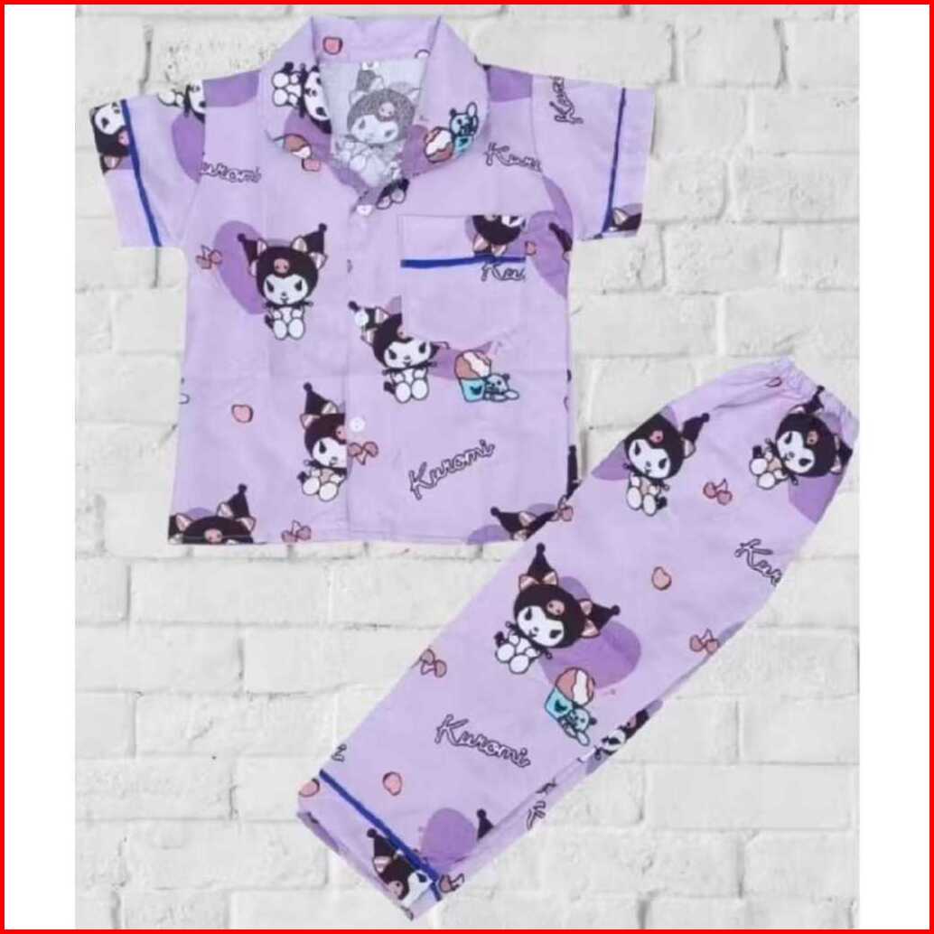 Piyama Baju Tidur Anak Terbaru Motif Kuromi Ungu Usia 1-10thn