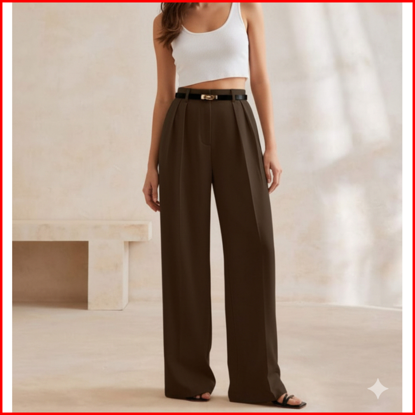Brokenhomess - Viona Loose Pants Trousers Wanita Jumbo Celana Kulot Highwaist Bahan Semiwoll Elegan