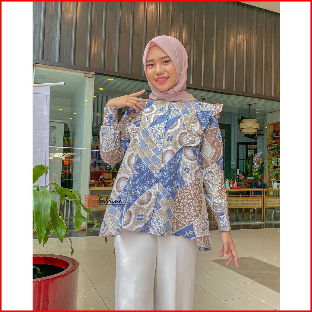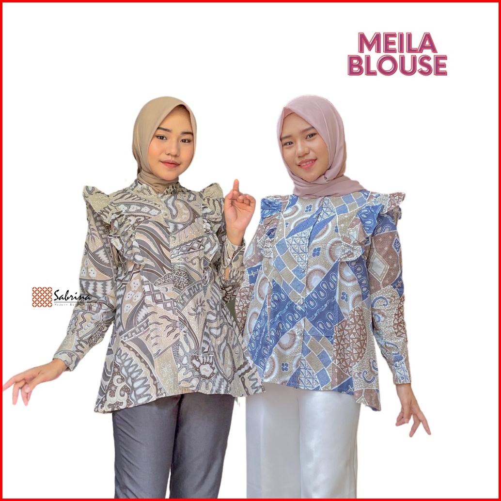 Meila Blouse Batik Kekinian Modis Pastel Soft Busui Ruffle Rampel