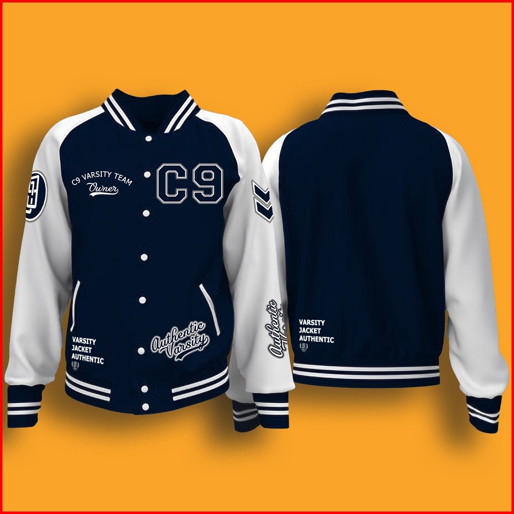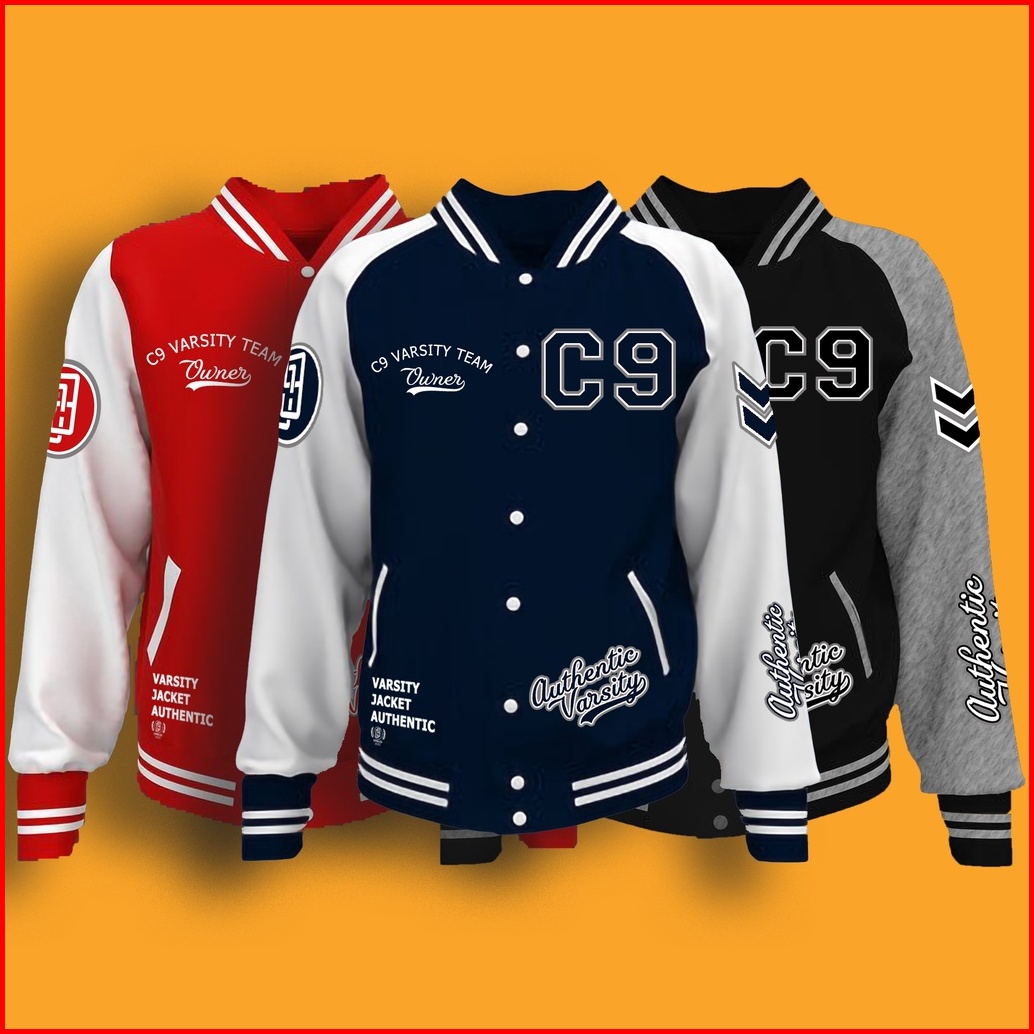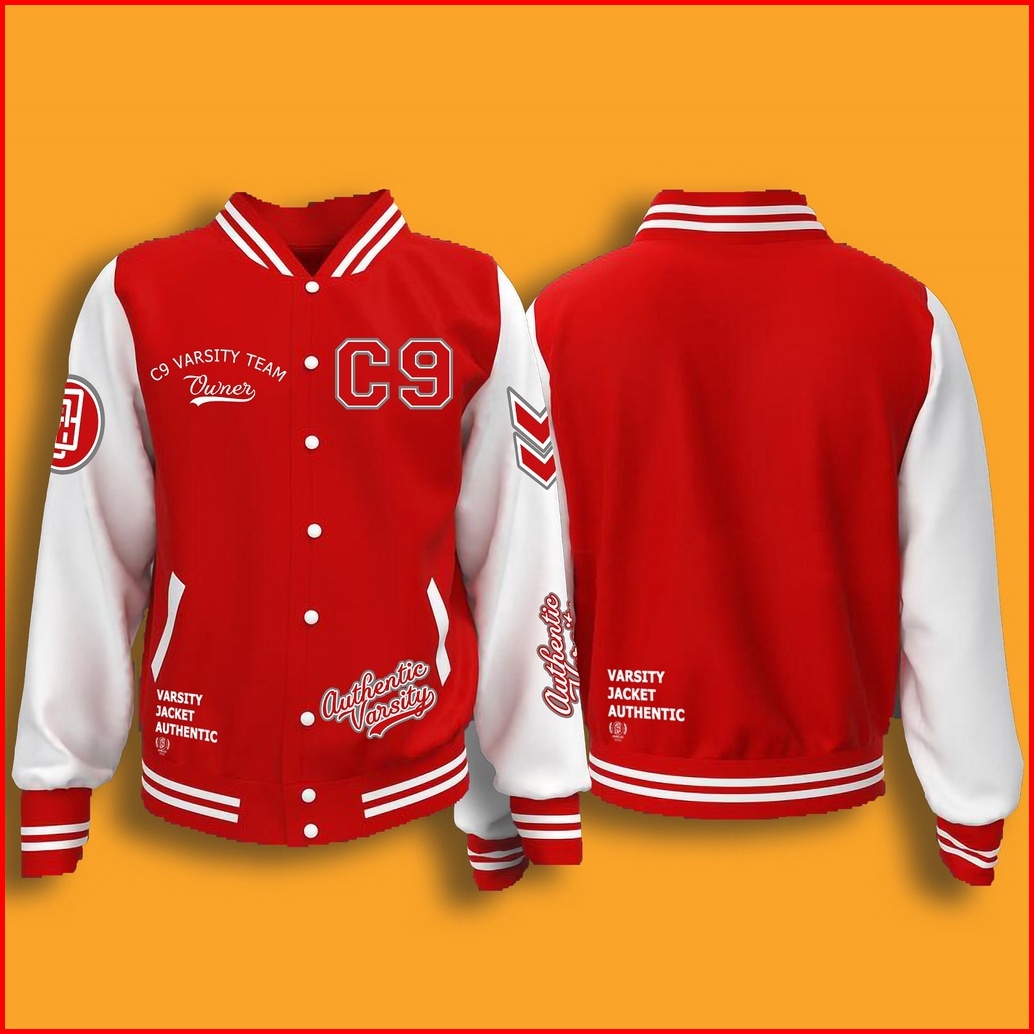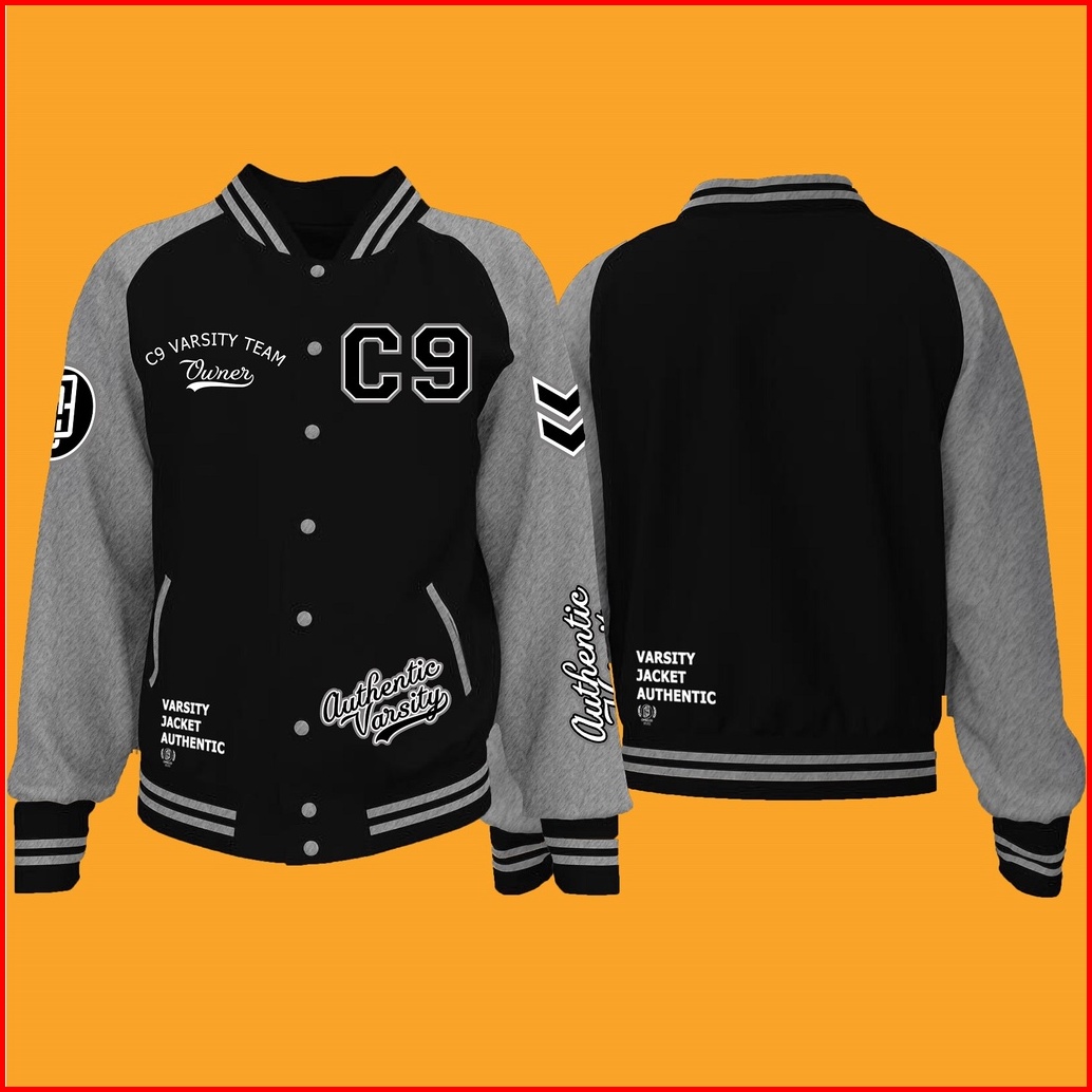 Jaket Baseball Varsity Kancing Motif Printing Pria