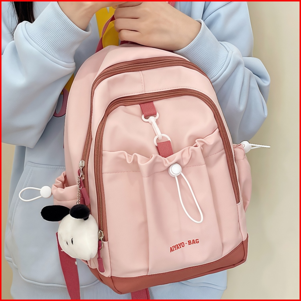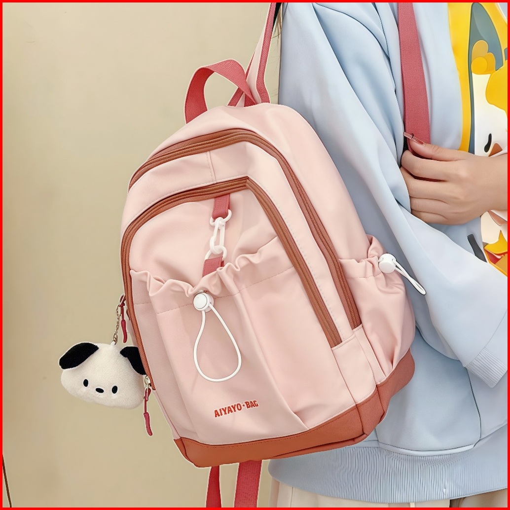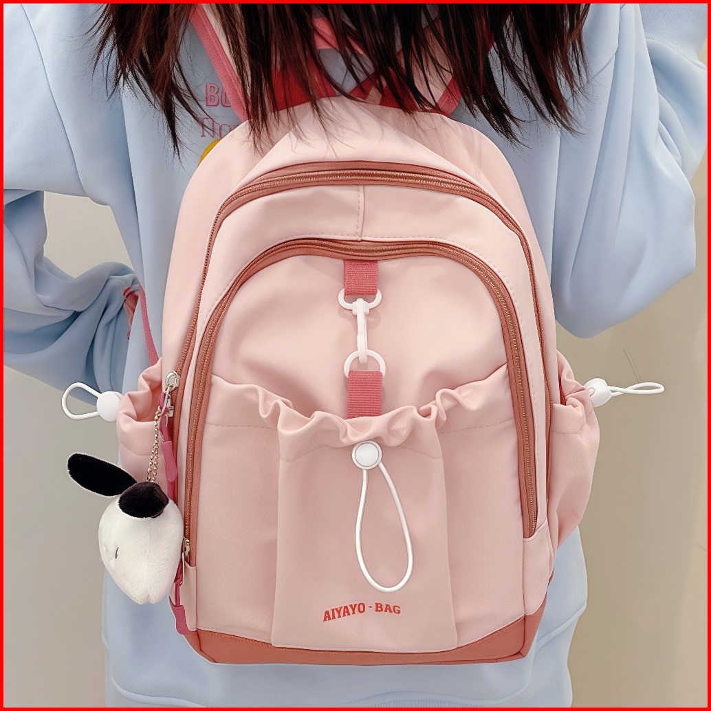Cantikero Tas Ransel Pelajar Merah Muda Ransel Kasual Bergaya Kampus Tas Travel Berkapasitas Besar Ransel Wanita Tahan A