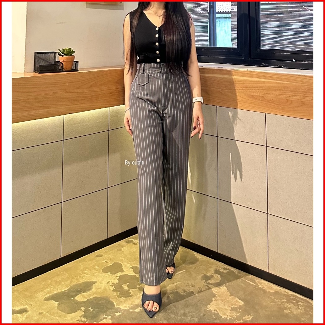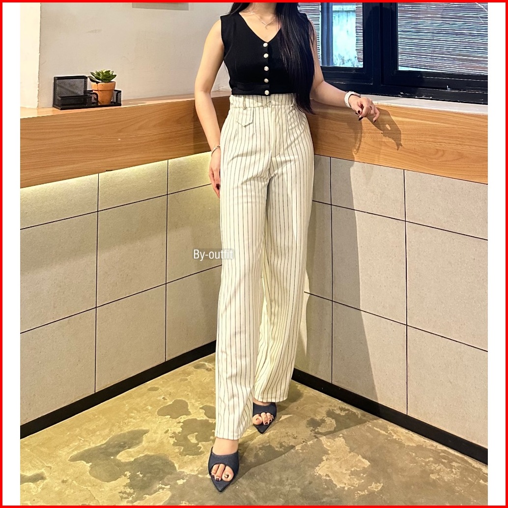 By Outfit - Oro Pants Stripe - Loose Pants Bangkok Celana Anti Kusut Celana Panjang Korean Style Kulot Wanita