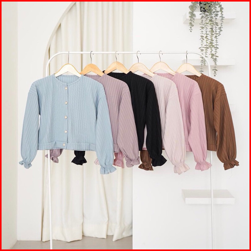 Manisfasion Id - Cardigan Hornet Puffy Knit Korean Style Cardigan Button Kancing Vintage