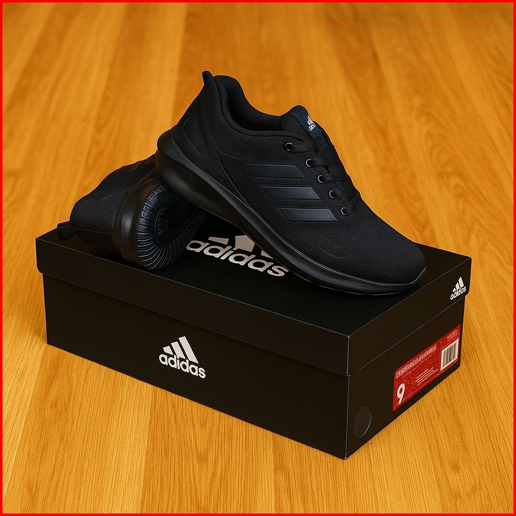 Promo Sepatu Sekolah Adidas Hitam Polos - Hitam Putih Sol Phylon Karet Ringan Empuk Lentur Anti Slip Sepatu Kerja Kuliah